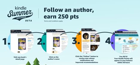 If you’ve bought ebooks from Amazon before, you’ve already earned some points. And until September 22, you can take a big step closer to frebies: following an author will get you 250 bonus points. So why not follow me?